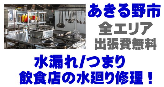 あきる野市レストランシンク水漏れ / あきる野市レストランチェーン蛇口水漏れ / あきる野市飲食店排水パイプつまり / あきる野市ファミレス給湯器修理