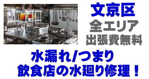 / 文京区サイゼリヤ漏水修理 / 文京区ジョナサン水道工事 / 文京区デニーズ水道業者 / 文京区ココス指定工事店 / 文京区ロイヤルホスト排水管清掃