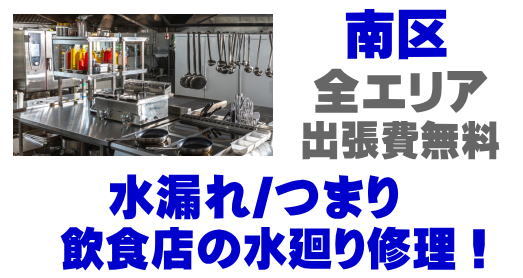 南区レストランシンク水漏れ / 南区レストランチェーン蛇口水漏れ / 南区飲食店排水パイプつまり / 南区ファミレス給湯器修理 / 南区ガスト水道修理